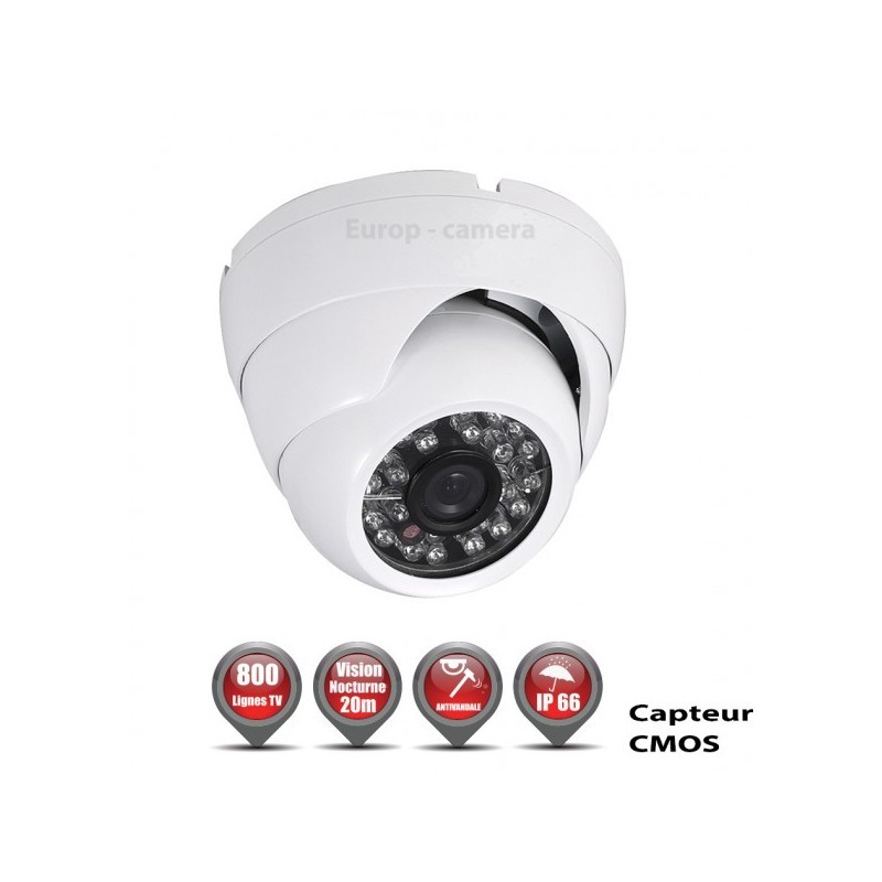 Câmera dome 800 linhas 1/3 Sensor CMOS IR 20m à prova de água branca