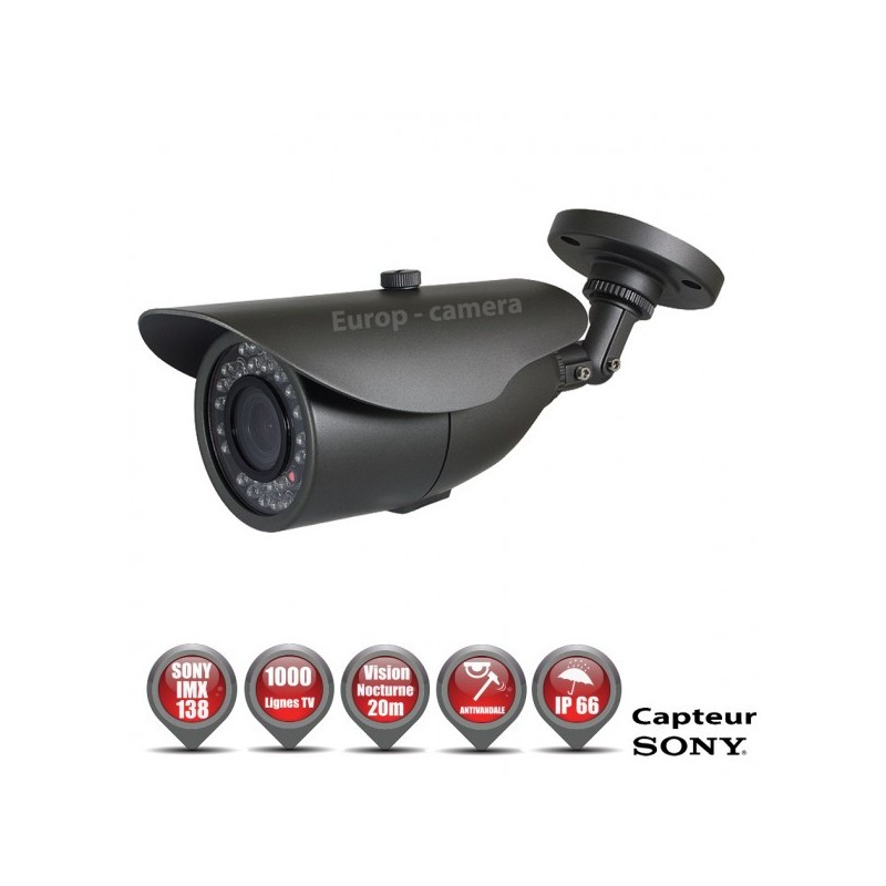 Câmera bullet 1000 TVL 1/3 SONY IMX138 IP66 IR 20m à prova de água e de vandalismo - Função contra-luz e menu OSD 3DNR - Zoom digital
