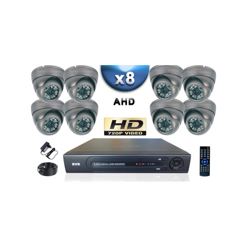 Kit PRO AHD : 8 câmeras domes IR 35m SONY HD 960P + gravador DVR AHD 2000 Go