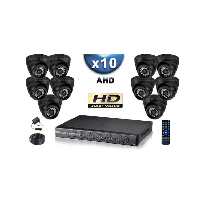 Kit PRO AHD : 10 câmeras domes IR 20m SONY HD 960P + gravador DVR AHD 2000 Go
