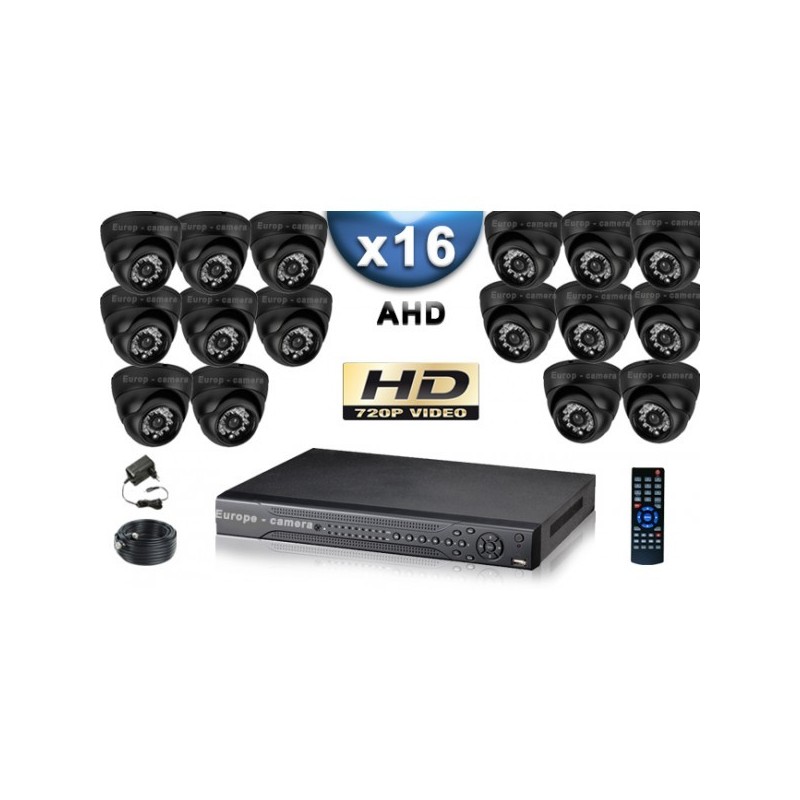 Kit PRO AHD : 16 câmeras domes IR 20m SONY HD 960P + gravador DVR AHD 3000 Go