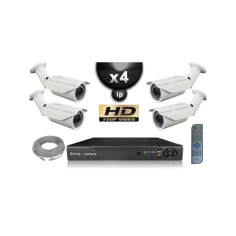 Kit PRO IP : 4 câmeras bullet POE IR 40m OMNIVISION 720P + gravador NVR 8 canais H264 FULL HD 2000 Go
