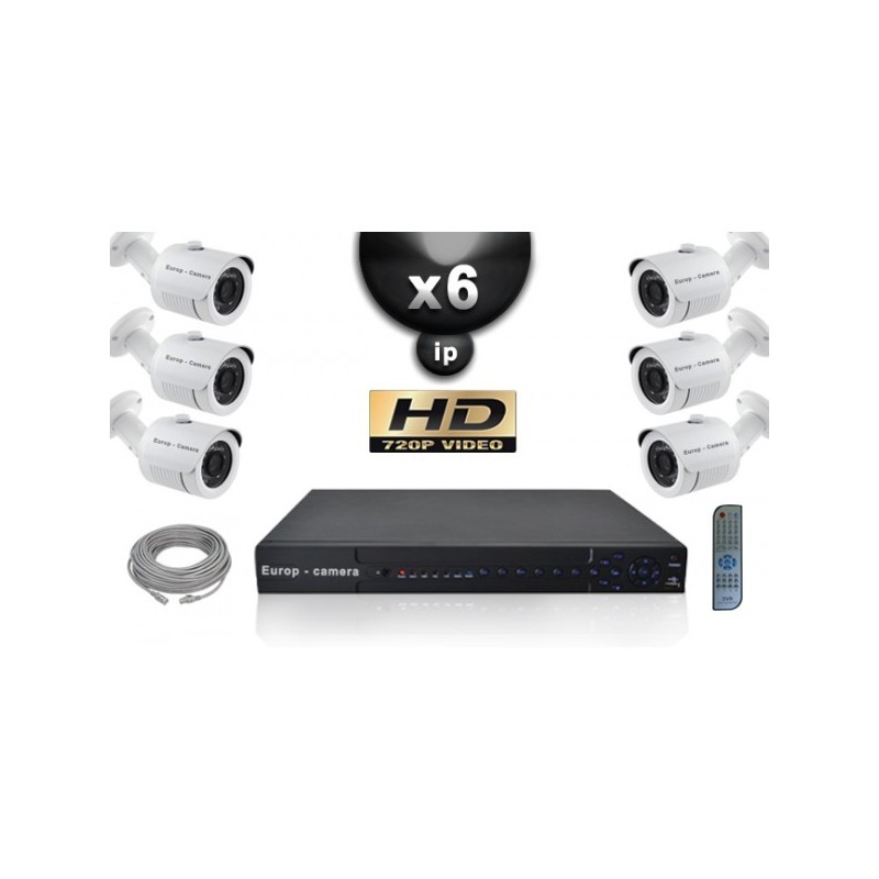 Kit PRO IP : 6 câmeras bullet POE IR 20m OMNIVISION 720P + gravador NVR 8 canais H264 FULL HD 2000 Go
