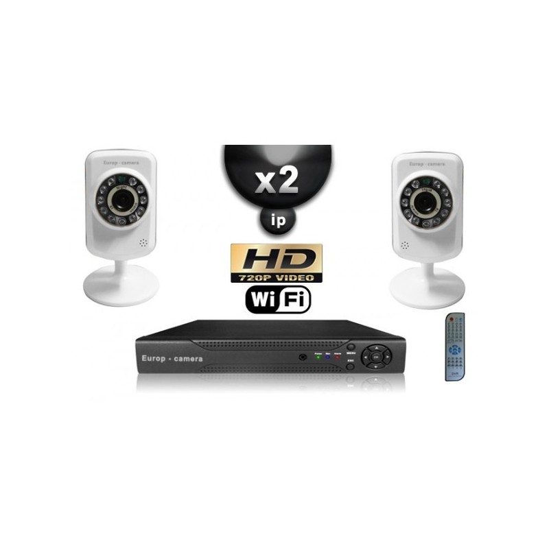 Kit PRO IP : 2 câmeras WIFI IR 8m HD 720P + gravador NVR H264 FULL HD 1000 Go